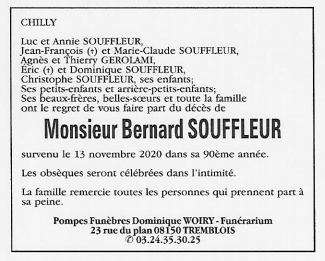 Décédé à Chilly (08260, France) le vendredi 13 novembre 2020 à l'âge de 89 ans