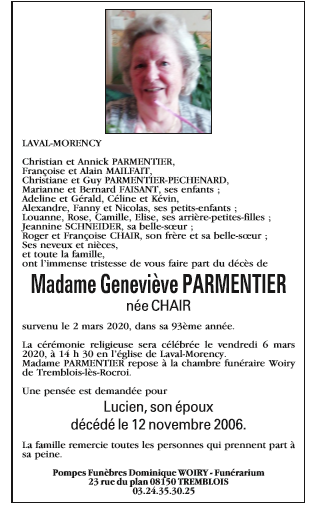 Madame Geneviève PARMENTIER née CHAIR