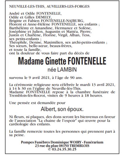 Madame Ginette FONTENELLE née LAMBIN