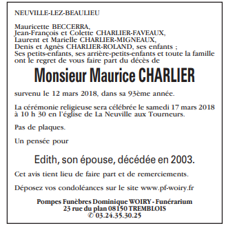 Décédé à Charleville-Mézières (08000, France) le lundi 12 mars 2018 à l'âge de 92 ans