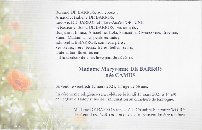 Madame Maryvonne DE BARROS née CAMUS