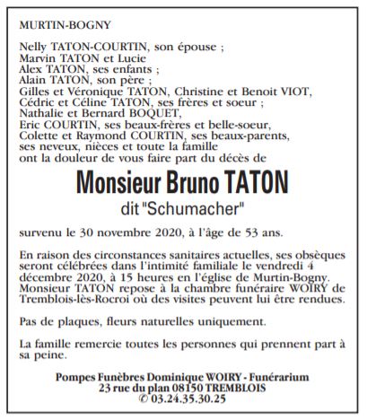 Décédé à Charleville-Mézières (08000, France) le lundi 30 novembre 2020 à l'âge de 53 ans